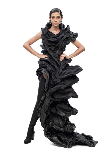 "Born into a world of war and conflict, my early life was shaped by constant fear and a struggle for safety. These challenges silenced me but also fueled a desire for self-expression. Today, I am proud to channel this resilience into my art, transforming garments into statements of freedom, power, and sensuality. My mission is to imbue each piece with an air of feminine elegance that bestows the wearer with audacious confidence. For when we are empowered, the realm of possibility is boundless."